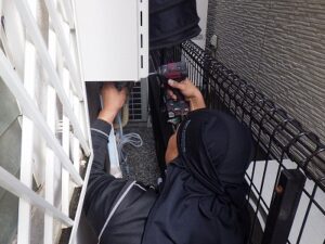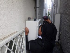 新しいノーリツ給湯器を設置場所の壁に取り付けます