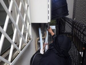 ノーリツ給湯器にお湯、水・ガス・追い焚き配管を接続します