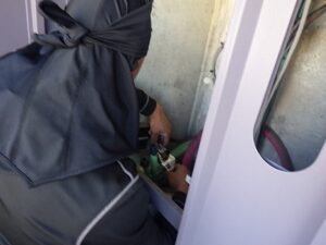 パイプスペースの扉を閉めて、給湯器交換工事完了になります