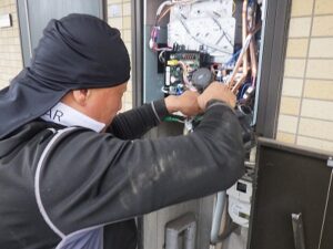 リンナイ給湯器にリモコン配線を接続します