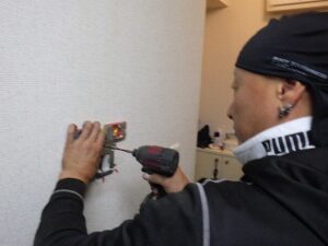 確認しながら、壁にビスできちんと固定します