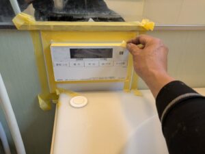 浴室リモコンの周りにマスキングテープを取り付けます
