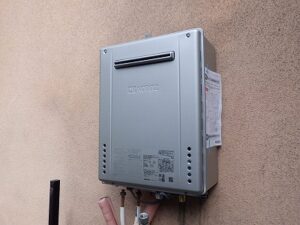 新しいノーリツエコジョーズ給湯器を壁に取り付けます