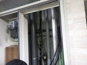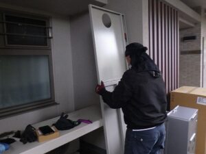 パイプスペースの扉が邪魔になるので、扉を取り外します