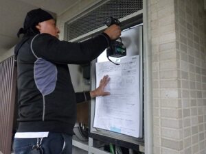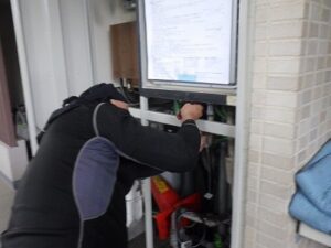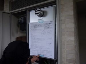 パイプスペースの扉を閉めて、給湯器交換工事完了になります