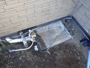 既存のノーリツ給湯器を設置場所より取り外します