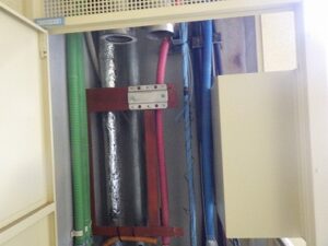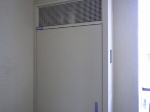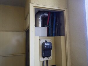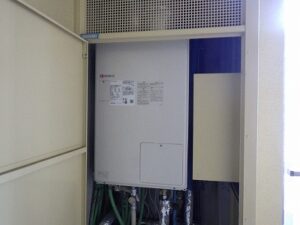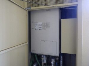 パイプスペースの扉を閉めて給湯器交換工事完成です