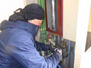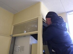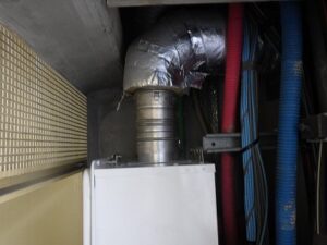 パイプスペースよりノーリツ・東京ガスTES・熱源付上方排気給湯器を取り外します