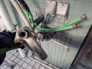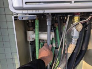 配管カバーを取り外して、お湯、水、ガス・追い焚き、