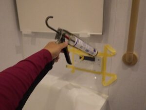 浴室リモコンの周り防水のコーキングを打ちます