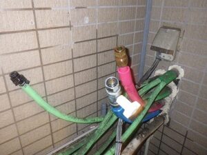 お湯、水配管の接続口のパッキンをきちんと取り外しておきます
