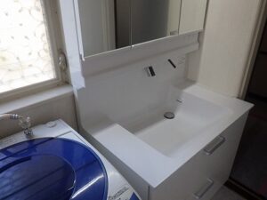 昨日の逗子の洗面化粧台・洗面まわりの工事も無事に完了しました!