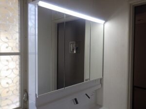 床も綺麗になり、無事に洗面化粧台工事完了になります