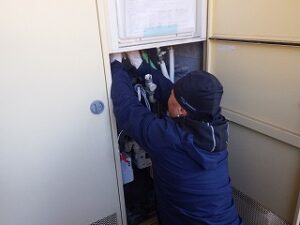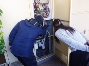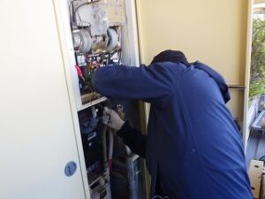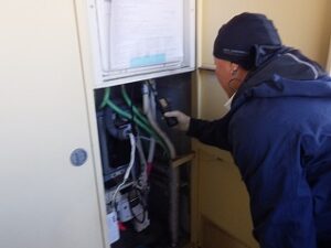 パイプスペースの扉を閉めて、給湯器交換工事完了になります