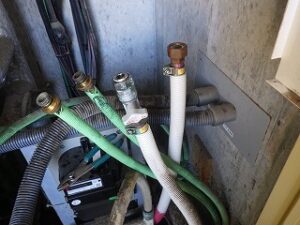 お湯、水・追い炊き配管の接続口のパッキンをきちんと取り外しておきます