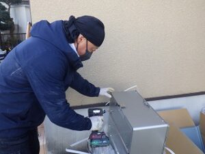 ノーリツエコジョーズTES・熱源付給湯器の全面パネルを取り付けます