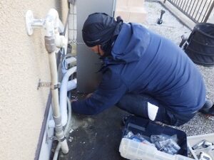 お湯、水・ガス・追い焚き・暖房配管を接続します