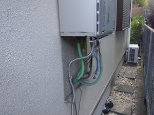 既存のリンナイエコジョーズ給湯器を壁より取り外します