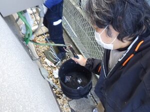 ガス漏れ確認をガス漏れ検知器できちんと確認します