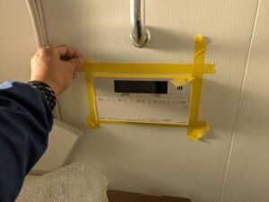 浴室リモコンの周りにマスキングテープを取り付けます