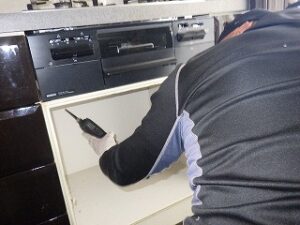 新しいノーリツコンロを天板に取り付けます