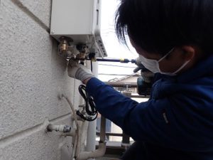 既存の給湯器を取り外します