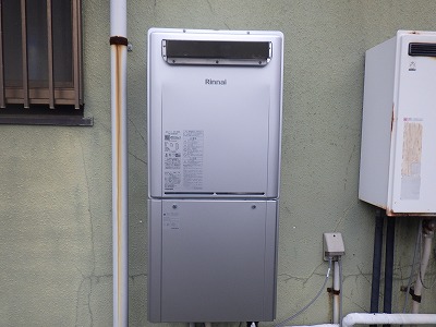 交換後給湯器 リンナイRUF-E200FSAW・MBC-240V・配管カバー450・上排気部材