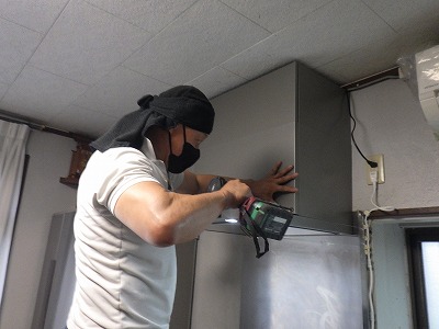 レンジフード交換工事ご依頼ありがとうございます。レンジフード単体なので、左右に横膜板が必要になります。あとプロペラの換気扇式だったので、ちょっとその部分で排気ダクトを作るのに苦労しました。また何かの際はよろしくお願いいたします。