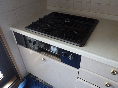 コンロ・レンジフード交換東京都足立区鹿浜 エンゼルハイム鹿浜 最初にコンロが壊れてしばら放置していたのですが、さすがに不便でコンロとついでにレンジフードも掃除をしても綺麗にならないのでコンロ・レンジフードの交換を考えました。