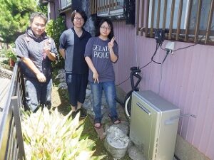 給湯器交換工事ご依頼ありがとうございます。最初に電話でお問い合わせをいただき、メールでお写真送っていただきありがとうございました。作業中も水漏れやガス漏れ確認を一緒にご確認いただきありがとうございます。また何かの際はよろしくお願いいたします。