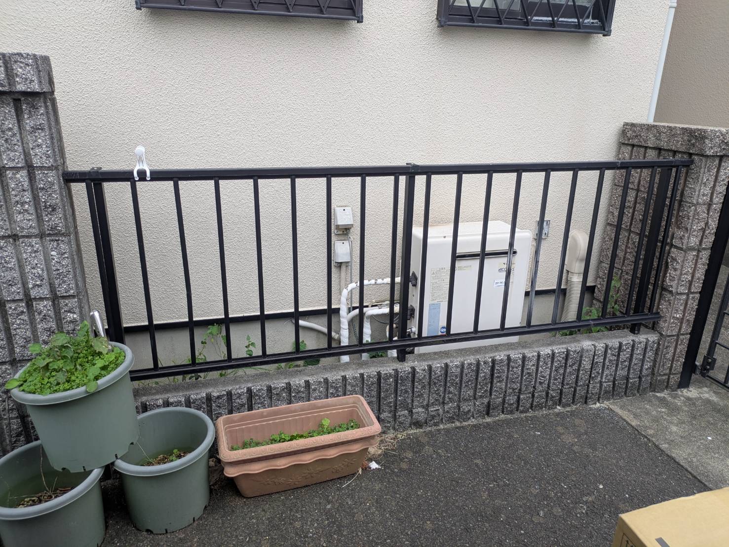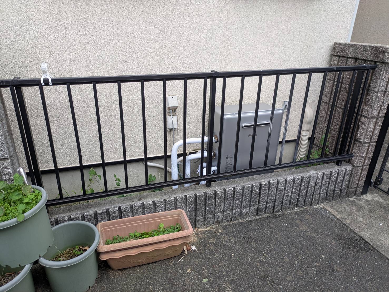 うちの給湯器は給湯器とフェンスの幅が狭く工事が大変じゃないのかな?と思ったのですが、フェンスを取り外してテキパキと給湯器の交換を押してくれました。