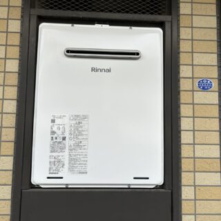 東京都多摩市豊ヶ丘ヒルサイド豊ヶ丘給湯器交換 リンナイRUF-A1610AW(A)→リンナイRUF-E161EAW・MBCTW-171・据え置き台650・側方排気部材